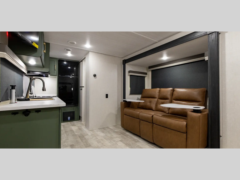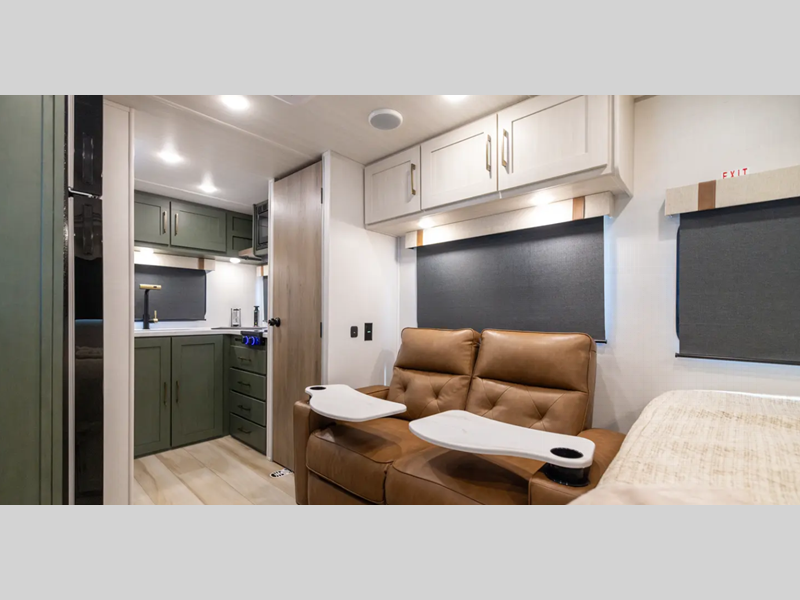 Sleeps 3 Slides 1 Length 24 ft 4 in Ext Width 8 ft Ext Height 11 ft 6 in Hitch Weight 670 lbs GVWR 6873 lbs Dry Weight 5373 lbs Cargo Capacity 1500 lbs Fresh Water Capacity 40 gals Grey Water Capacity 40 gals Black Water Capacity 30 gals Available Beds Murphy Refrigerator Type 12V Number of Awnings 1 Water Heater Type On Demand Tankless AC BTU 15000 btu Awning Info 16' Axle Count 2 Shower Type Standard Electrical Service 30 amp Solar Wattage 400 watts Similar Floorplans