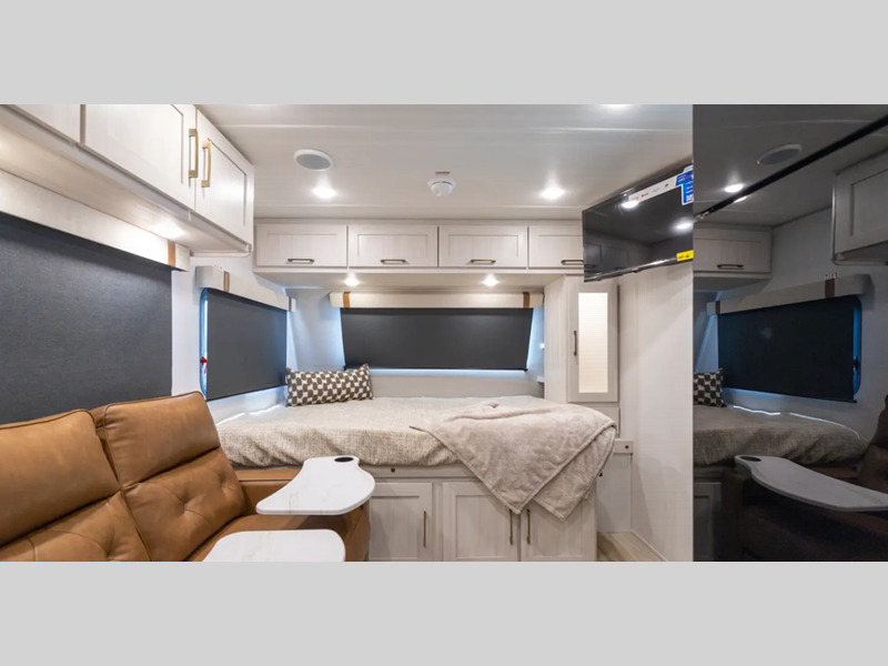Sleeps 2 Slides 1 Length 24 ft 11 in Ext Width 7 ft 4 in Ext Height 10 ft 11 in Hitch Weight 675 lbs GVWR 6813 lbs Dry Weight 5313 lbs Cargo Capacity 1500 lbs Fresh Water Capacity 30 gals Grey Water Capacity 30 gals Black Water Capacity 30 gals Available Beds Queen Refrigerator Type 12V Number of Awnings 1 Water Heater Type On Demand Tankless AC BTU 15000 btu Awning Info 12' Axle Count 2 Shower Type Standard Electrical Service 30 amp Solar Wattage 400 watts Similar Floorplans