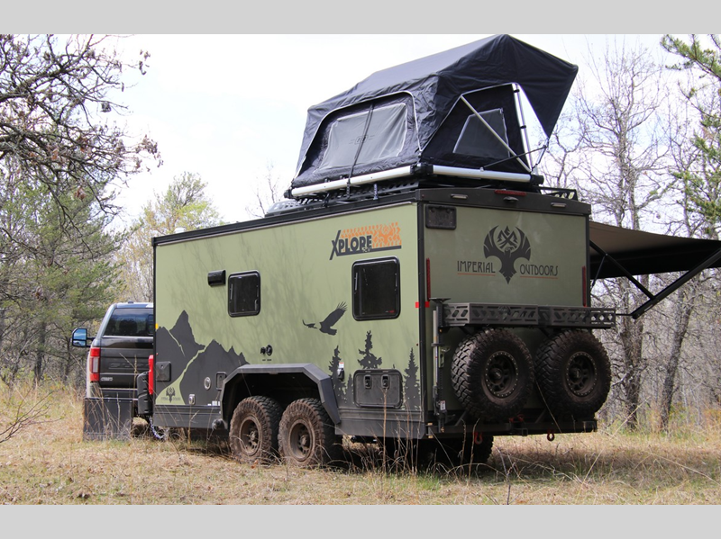 Explore the great outdoors in all weather and all terrain with an Imperial Outdoors XploreRV toy hauler or travel trailer! It takes off-grid RVing to another level with cold weather versatility and at-home comforts, as well as the rugged capabilities of an off-road camper.