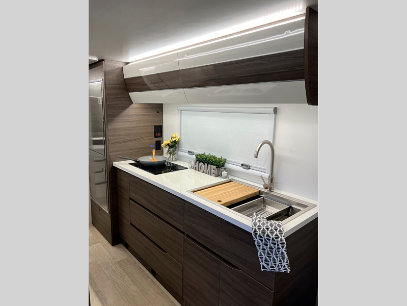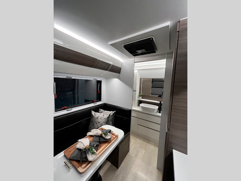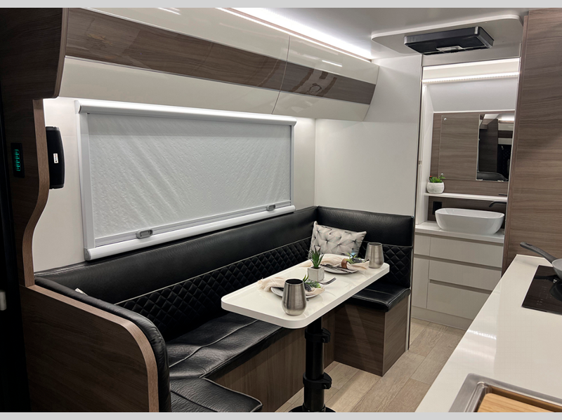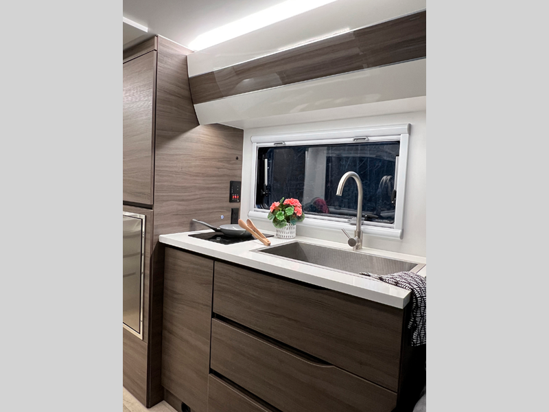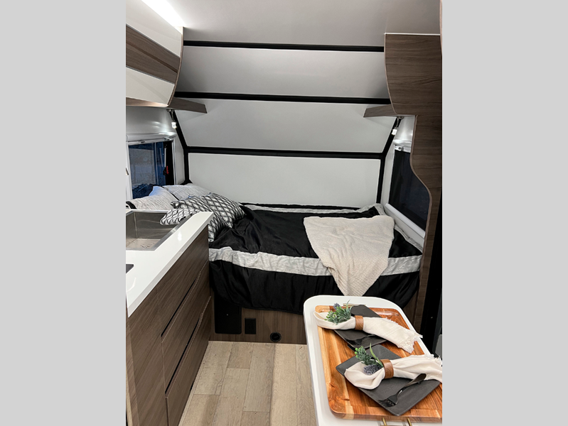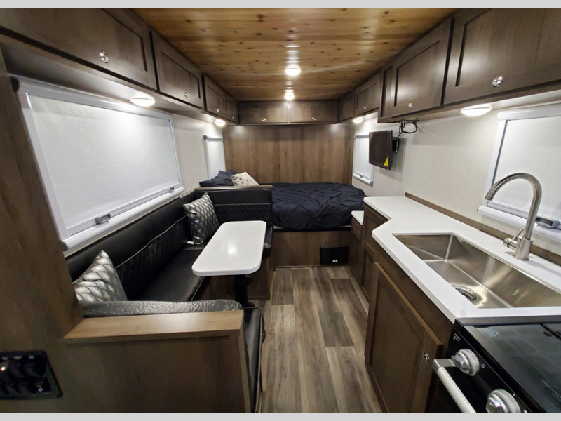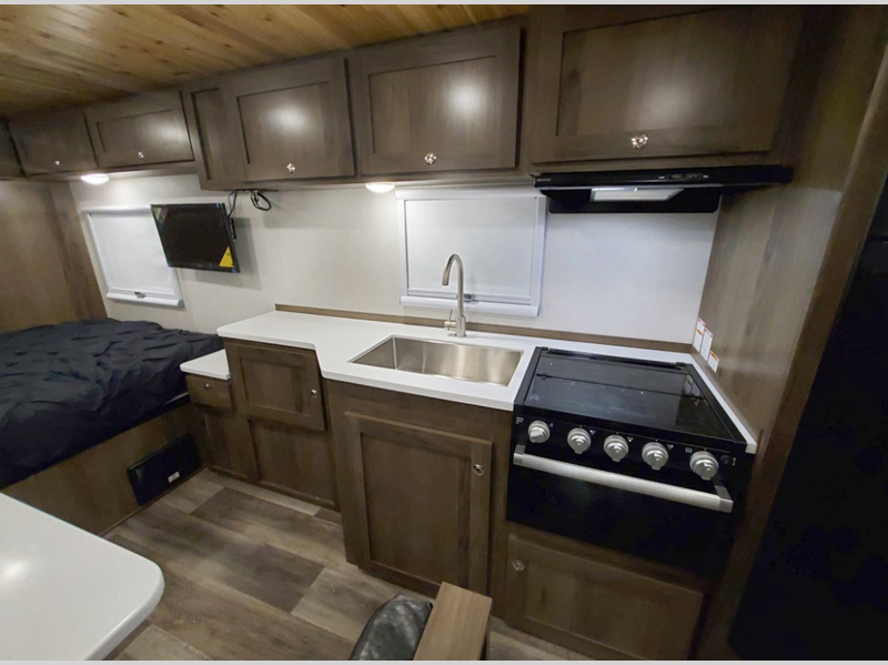 This beast is built to exceed the boundaries of a traditional RV and will roam anywhere others won't go with an off-road reinforced, coated steel frame and an obstruction free under carriage. The cold weather LP furnace will keep you comfortable down to -40 degrees Fahrenheit, and the D-ring recovery points help keep everything locked in place as you travel. You will also enjoy a full kitchen to cook in and a full bathroom with a dry flush toilet so you don't have to worry about a black tank when you're off-grid.