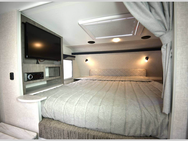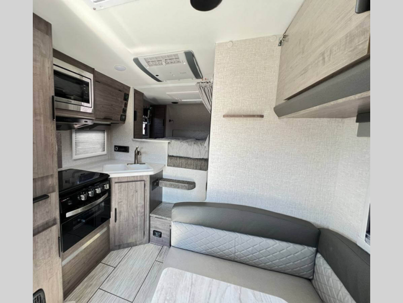Sleeps 6 Slides 2 Length 20 ft 4 in Ext Width 8 ft Ext Height 9 ft Int Height 6 ft 8 in Interior Color Lapis, Bronzite, Grayson Dry Weight 4063 lbs Fresh Water Capacity 42 gals Grey Water Capacity 35 gals Black Water Capacity 35 gals Furnace BTU 14300 btu Available Beds Queen Refrigerator Type Norcold Double Door Refrigerator Size 7 cu ft Cooktop Burners 3 Floor Length 11 ft 11 in Wet Weight 4517 lbs Center of Gravity Front 61 in Center of Gravity Rear 35 in LP Tank Capacity 7 gals Water Heater Type Truma Aquago Truck Bed Size Long Number of LP Tanks 2 Body Style Hard-Side Shower Type Standard Similar Floorplans