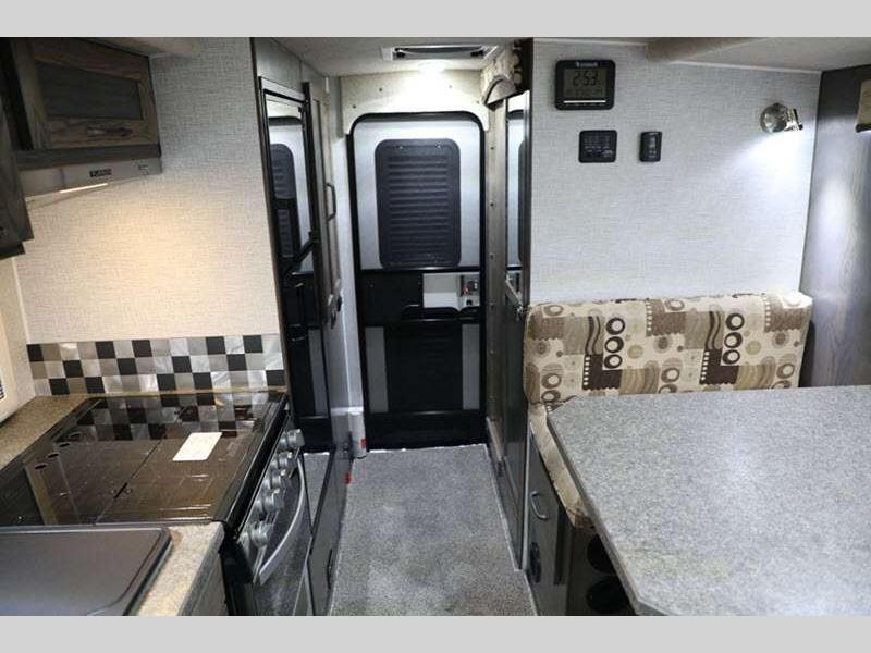 Sleeps 3 Length 18 ft 2 in Ext Width 8 ft 2 in Ext Height 8 ft 10 in Int Height 6 ft 8 in Dry Weight 3435 lbs Fresh Water Capacity 36 gals Grey Water Capacity 40 gals Black Water Capacity 18 gals Furnace BTU 20000 btu Available Beds Queen Refrigerator Type Two Way Refrigerator Size 6.3 cu ft Cooktop Burners 3 Number of Awnings 2 Floor Length 10 ft 11 in Center of Gravity Front 48 in LP Tank Capacity 40 lbs Water Heater Capacity 6 gal Water Heater Type DSI AC BTU 10000 btu Truck Bed Size Long TV Info LR LCD TV Screen 12V Awning Info 10' Side, 7' Power Rear Body Style Hard-Side Shower Type Standard -