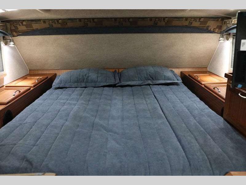 The Special Edition Series comes with a Fantastic Fan, a Heki thermal skylight, a 10' side awning, and a 7' power rear awning for added protection. There is also a heated basement, a bedroom privacy drape, and a sliding propane tray for added convenience. You'll be able to use the 12V LCD TV to watch some shows while you're out on the road, and you'll love the updated three, 200W solar panels for off-grid capabilities. Additional updates include a 20,000 BTU furnace and a now standard removable third step!
